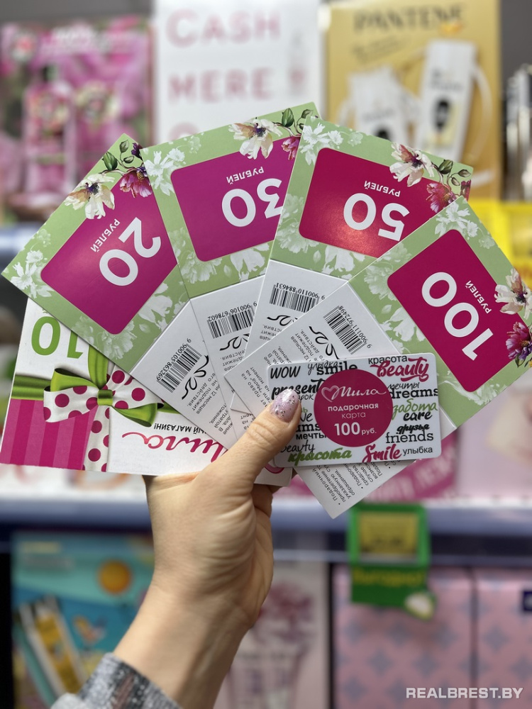 В рейтинг популярных презентов вошли и подарочные сертификаты. В «Миле» их номинал начинается от 20 рублей. Приобрести их можно и в электронном виде на сайте торговой сети, а потом отправить всем родным и близким в самых отдаленных городах Беларуси. Лично передавать сертификат не нужно, так как магазины «Мила» широко представлены по всей стране.