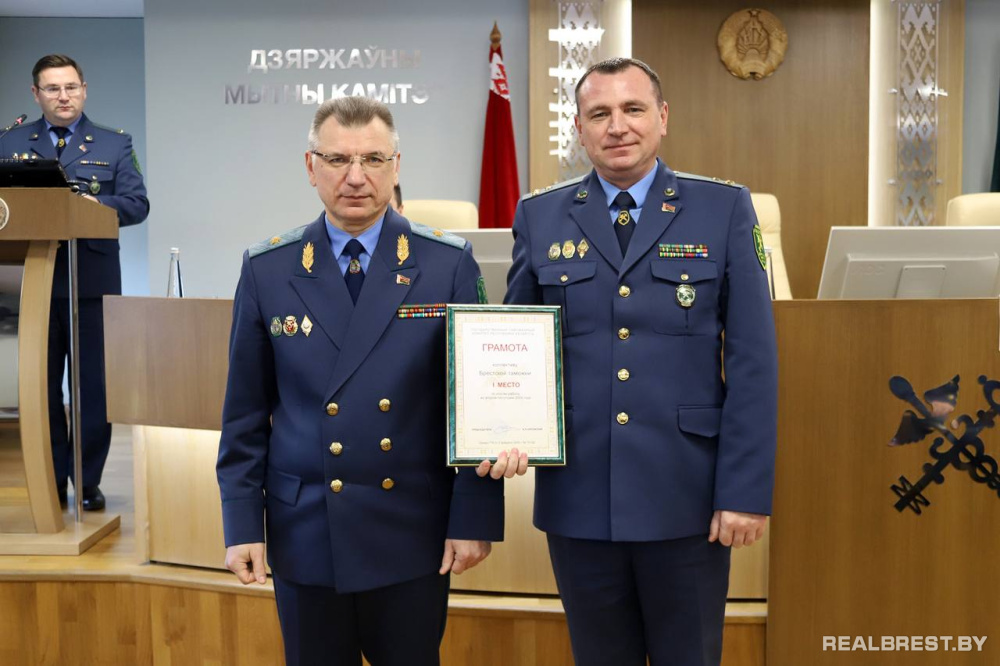 Брестская таможня признана лучшей в системе таможенных органов по итогам работы таможен за II полугодие 2024 г. Почетную награду начальнику Брестской таможни Сергею Якуте вручил Председатель Государственного таможенного комитета Владимир Орловский на состоявшемся 7 февраля в г. Минске заседании Коллегии Государственного таможенного комитета по подведению итогов 2024 года и постановке задач на 2025-ый.