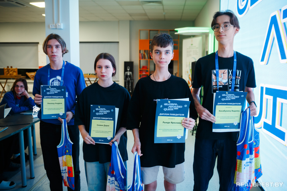Лучший результат среди 60 участников в ИЦАЭ Минска показали Вадим Кособукин (гимназия №11 г. Минска), Ярослав Рында (средняя школа № 19 г. Минска), Дарья Еловик (гимназия №1 г.Витебска) и Андрей Ляховец (средняя школа №72 г.Гомеля).