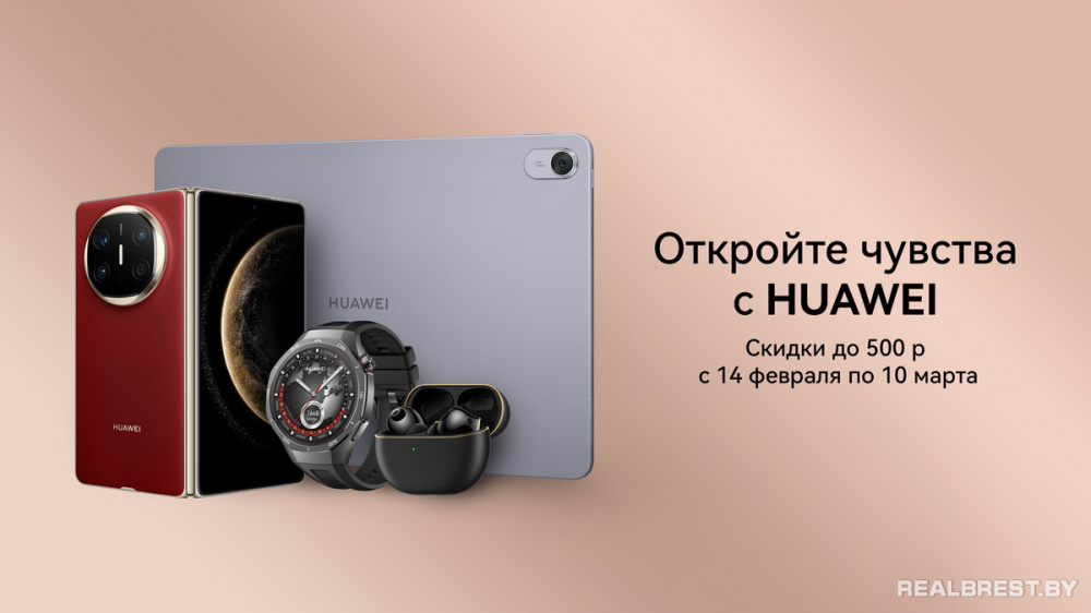 Скидки до 500 рублей на технику Huawei действуют по всей Беларуси с 14 февраля по 10 марта в торговых сетях МТС, А1, «5 элемент», 21vek, «На связи» и «Электросила». Наличие конкретных моделей и конфигураций уточняйте в местах продаж. Рекомендованные розничные цены действительны на момент публикации и могут отличаться от их фактической стоимости в магазинах.