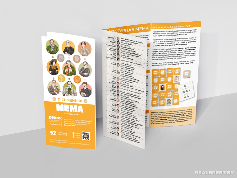 «Мема. Пісьменнікі» – трэцяя гульня ў серыі Мема. Акрамя картак з аўтарскімі ілюстрацыямі да настолкі прыкладаецца брашура з цікавымі фактамі пра беларускіх літаратараў. Спадзяемся, што «Мема. Пісьменнікі» дапаможа не толькі ўзнавіць веды са школьнай праграмы, але і заахвоціць больш чытаць на роднай мове», – адзначылі ў OZ.