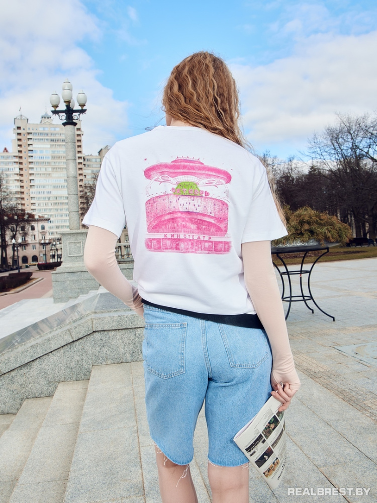 В капсулу вошли футболки с акцентом на ярких розовых принтах. Этот цвет добавляет мечтательности и подчеркивает иллюзорность созданных образов.