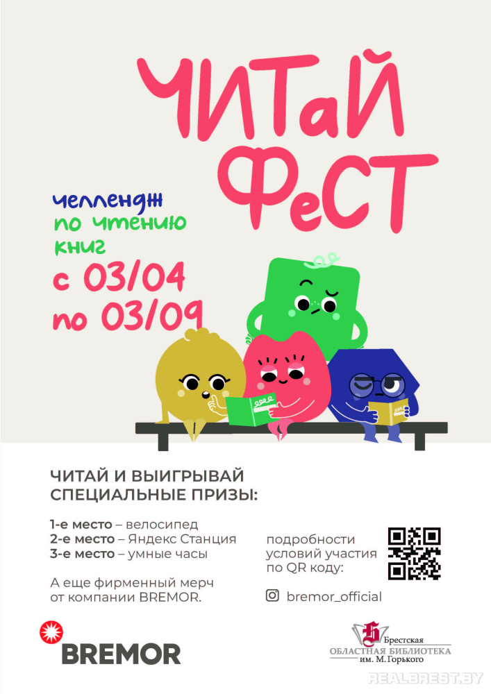 Брестская областная библиотека им. М. Горького совместно с компанией BREMOR запускают проект «ЧитайФест» для детей, которые любят читать книги. Мероприятие направлено на популяризацию чтения среди подростков и молодёжи в возрасте от 10 до 16 лет.