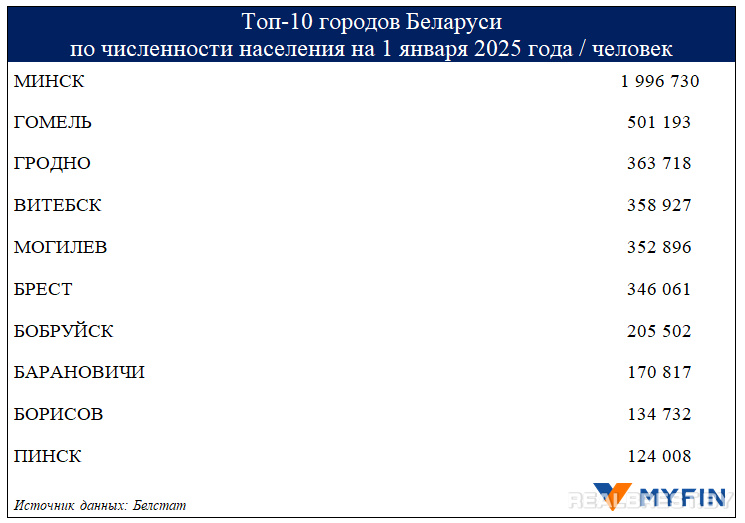 Myfin.bу изучил статистику и выяснил, какие белорусские города лидируют по количеству жителей в 2025 году.