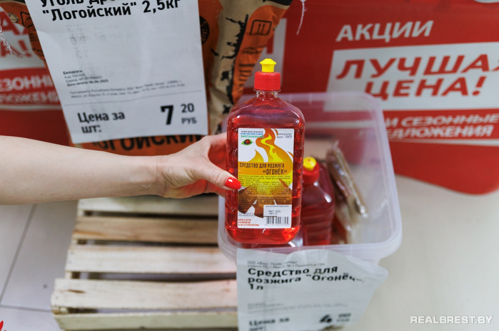 Много предложений для отдыха и пикника. Зефир воздушный BBQ Marshmallow, 200 г – всего 4,0 руб., набор для барбекю (лопатка, вилка, щипцы) – 2,50 руб., опахало - 1,0 руб., тарелки одноразовые, 10 шт. – 1,75 руб., уголь древесный, 2,5 кг – 7,20 руб., средство для розжига «Огонек», 1 л – 4,0 руб., бумажные полотенца Papia, 1 рулон – 3,50 руб., напиток сокосодержащий «Привет», 1,93 л – 4,60 руб.