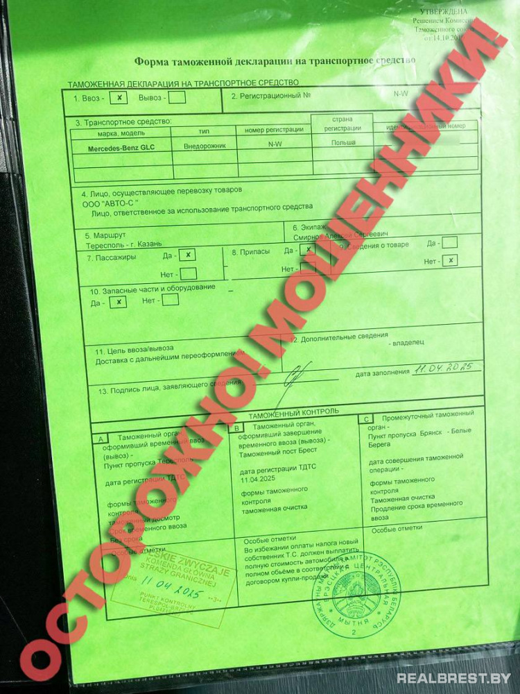 В очередной раз просим быть бдительными при выборе посредников для приобретения за границей транспортных средств и внимательными при проверке направляемых в ваш адрес подтверждающих совершение таможенных действий документов!
