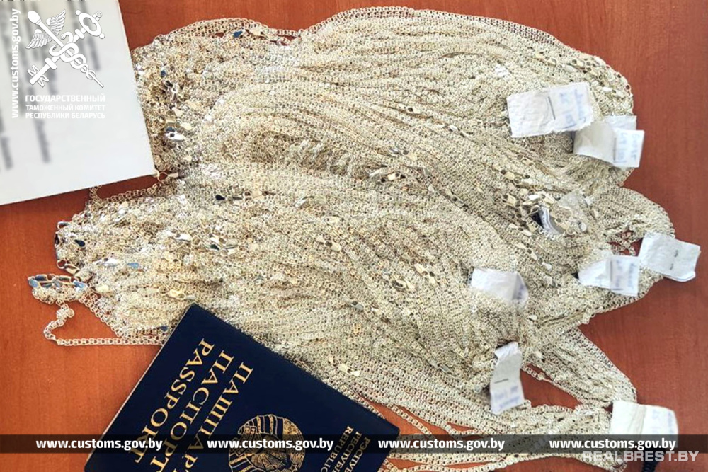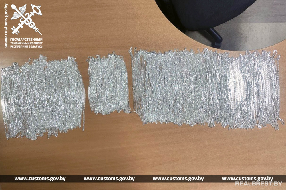 С использованием металлоискателя таможенники установили, что в обуви водителя находятся 323 единицы серебряных цепочек различного веса, длины и плетения. Оценочная стоимость изделий составила около 43 тыс. рублей.