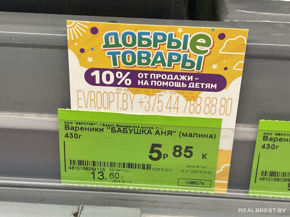 Компания BREMOR с 1 по 31 августа поддержит благотворительную акцию торговой сети «Евроопт». При покупке замороженных вареников с малиной от «Бабушки Аня», а также салата «Крабовый» с креветками и ананасом от «Самое время» 10% от стоимости этих продуктов будут направлены на добрые дела.