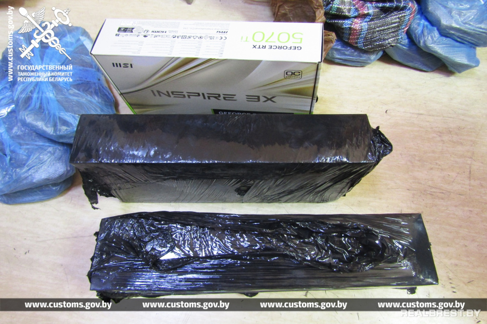 Из ниш, после демонтажа декоративных обшивок в верхней части кабины, таможенники извлекли 950 распылителей форсунки и секций высокого давления. А из другого тайника, оборудованного в конструктивной нише под спойлером кабины тягача, извлечены видеокарты.