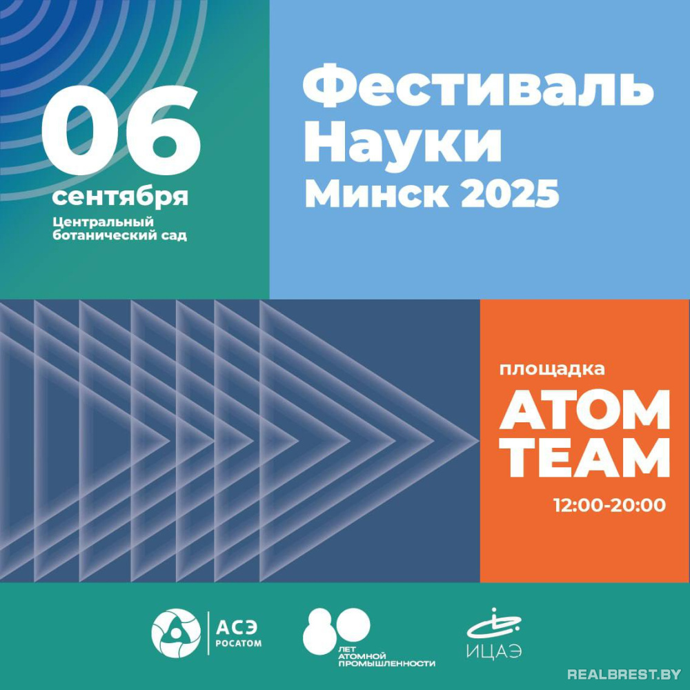 6 сентября 2025 года в Минске (Республика Беларусь) пройдет Фестиваль науки, в рамках которого Информационный центр по атомной энергии (ИЦАЭ) Минска при поддержке Инжинирингового дивизиона госкорпорации «Росатом» представит научно-познавательную программу Atom Team, посвященную 80-летию атомной промышленности России.