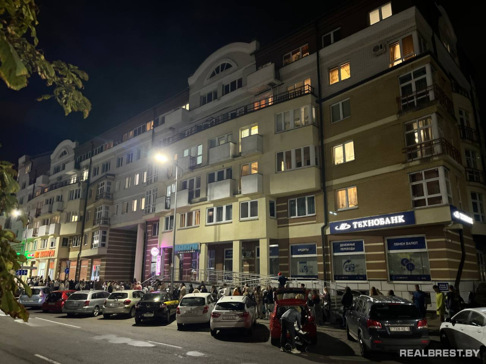 В ночном Бресте у магазина OZ гигантская очередь из людей в пижамах