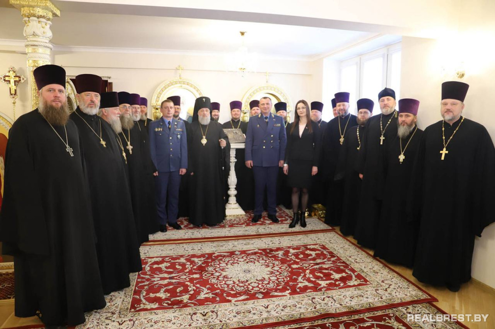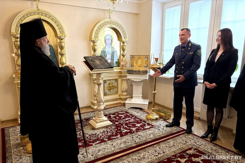Начальник Брестской таможни Сергей Якута передал в торжественной обстановке архиепископу Брестскому и Кобринскому Иоанну икону в серебряном окладе с изображением Святых Александра Невского и Нины, просветительницы Грузии.