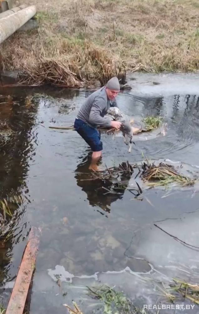 В Жабинке прохожий спас животное, провалившееся под лёд