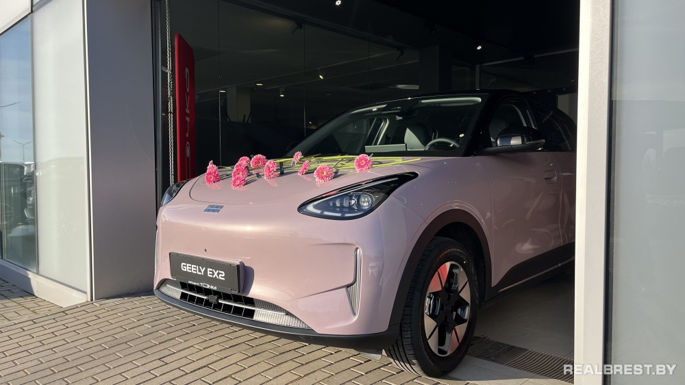 В автоцентр «Точка» поступила женская версия электромобиля Geely EX2 в розовом цвете. Лимитированная партия приурочена к 8 Марта и Году белорусской женщины. Автомобили собраны на белорусском заводе «БЕЛДЖИ».