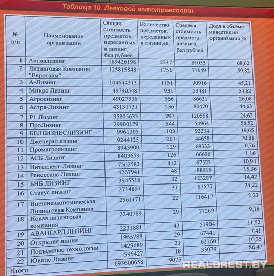 Традиционно одна из самых обсуждаемых категорий в белорусском лизинге - транспортные средства. На их долю приходится почти 60% от объемов всего лизингового рынка Беларуси. По итогам 2025 года локомотивом сегмента признало ООО "Активлизинг". Общая стоимость автомобилей, которые компания передала в лизинг, составила почти 189,5 млн рублей. Примечательно, что это частная лизинговая компания, а ближайший коллега с “банковскими” корнями расположился всего на 3 строчке рейтинга с двукратным отставанием по количеству предметов, выданных в лизинг.